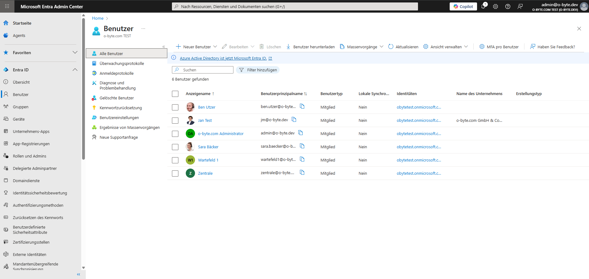 Navigiere im Microsoft Entra Admin Center zu "Benutzer" in der linken Sidebar.