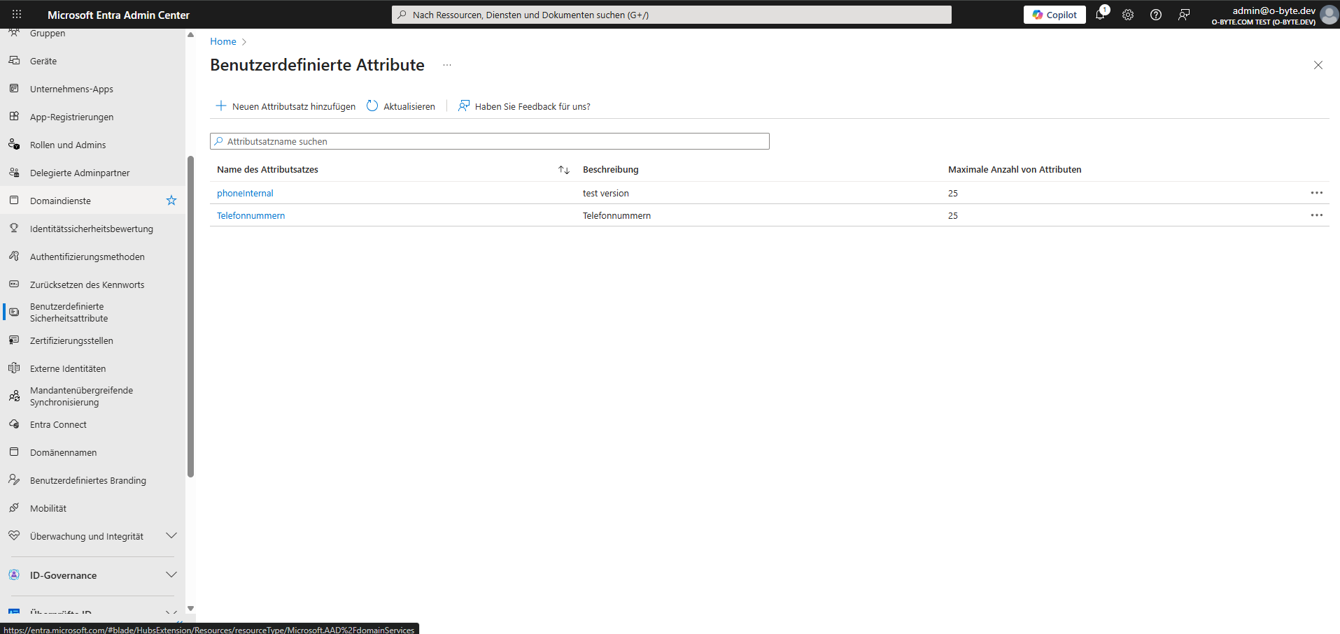 Wähle in der Seitenleiste links den Punkt Benutzerdefinierte Sicherheitsattribute aus.