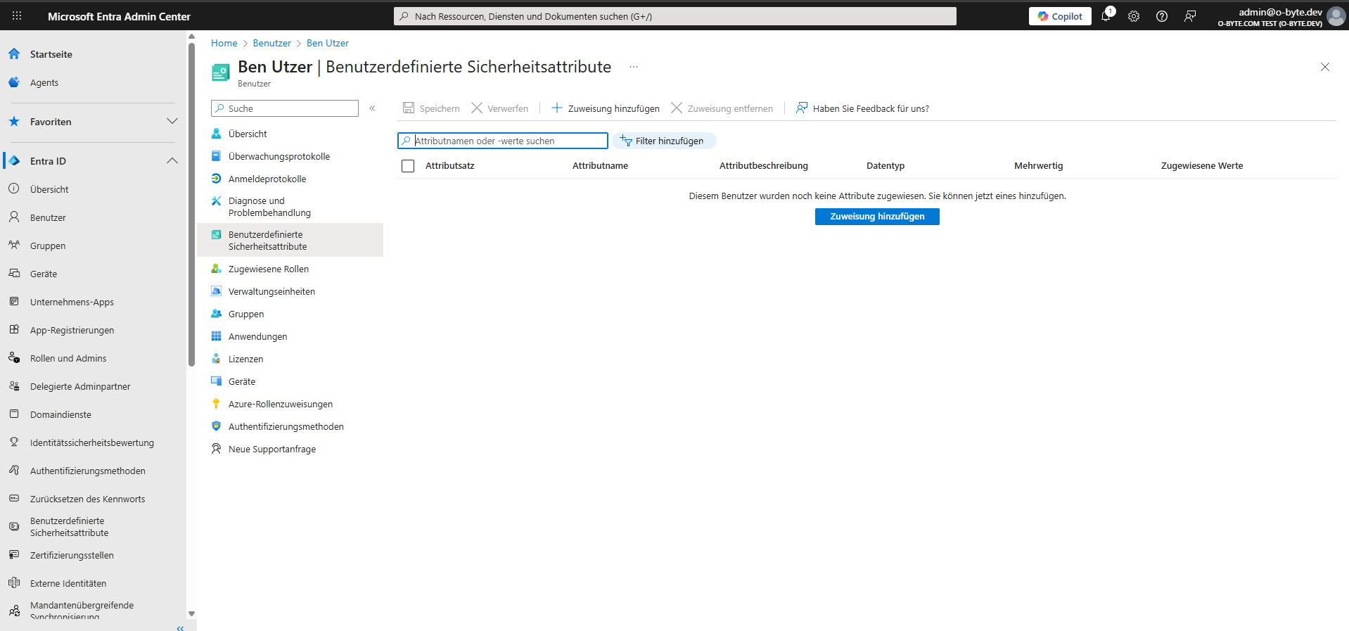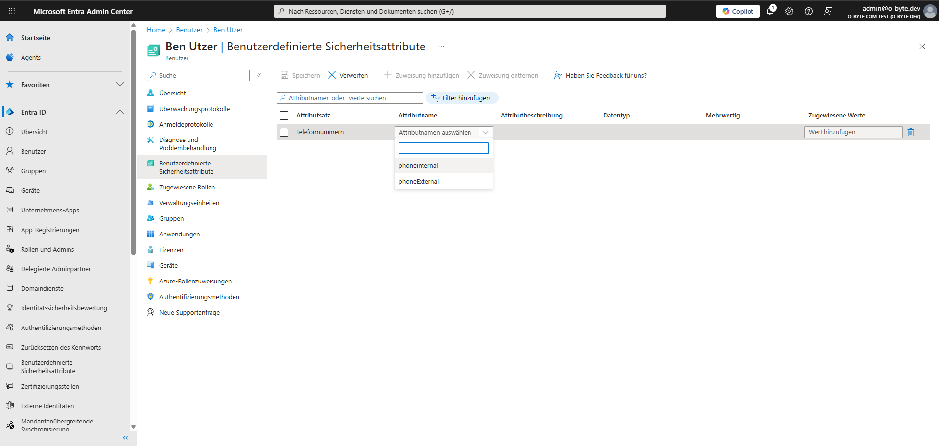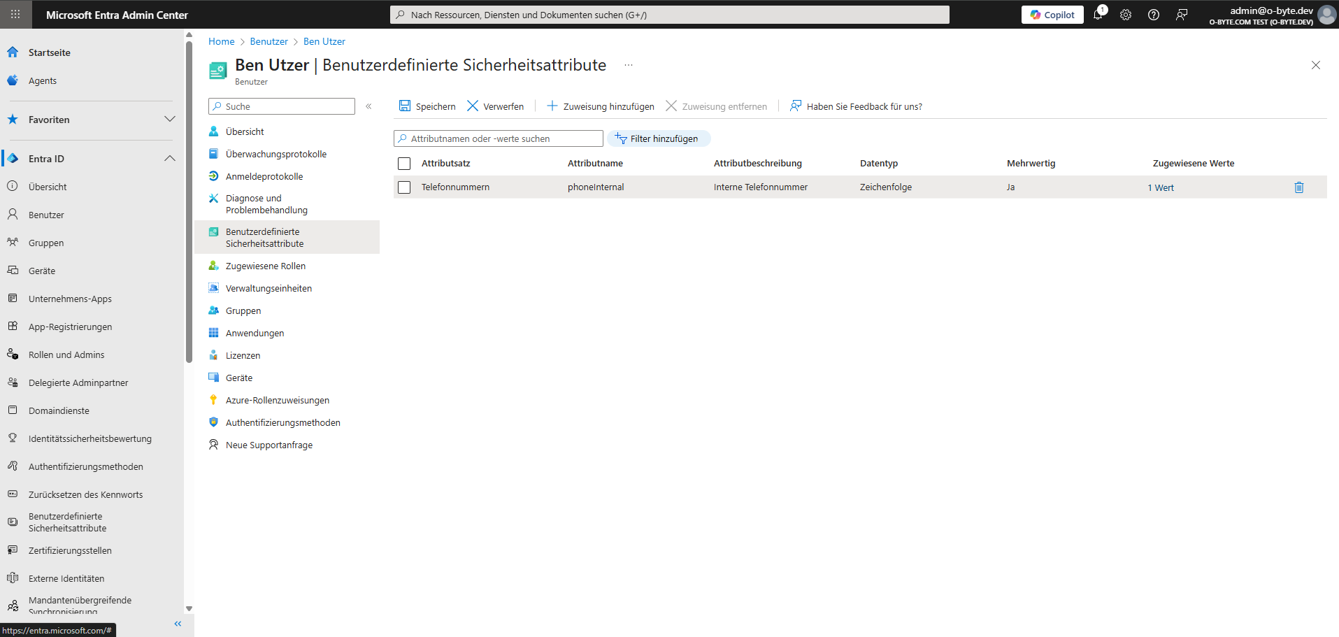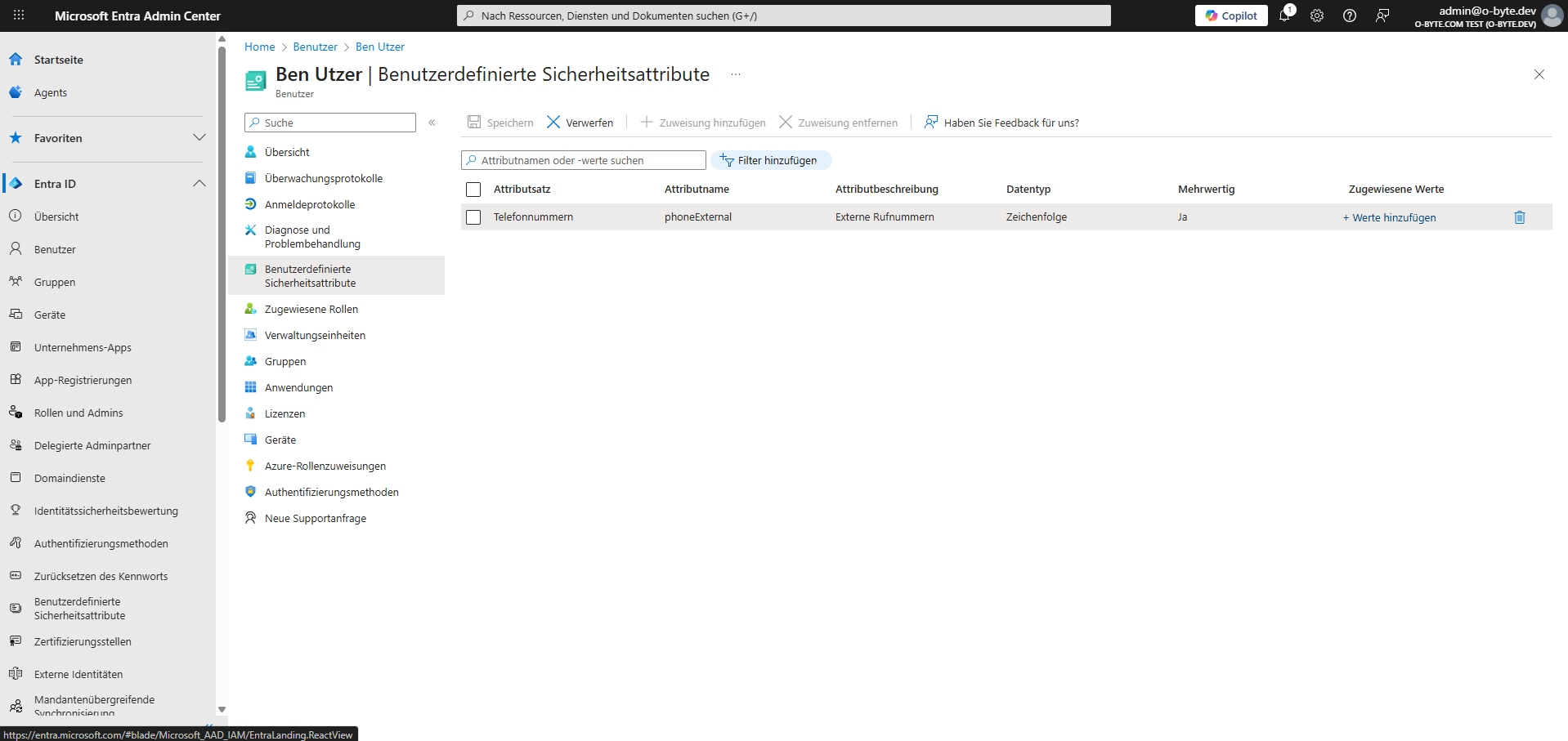 Entra ID benutzerdefinierte Sicherheitsattribute