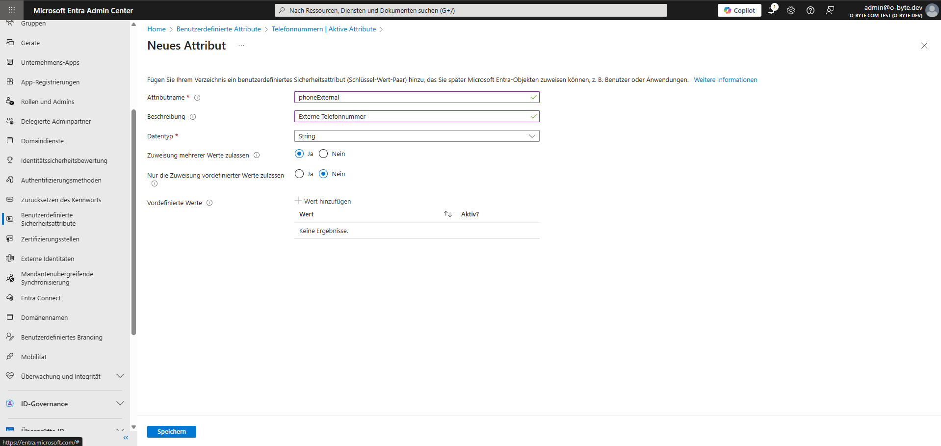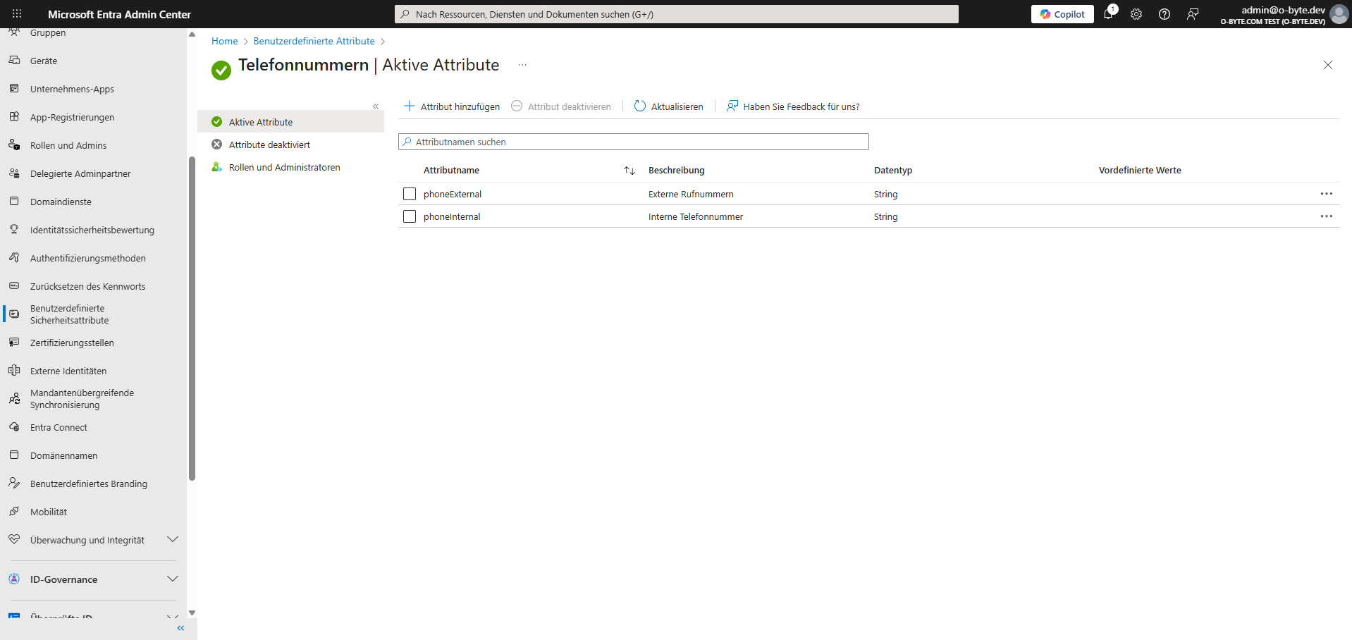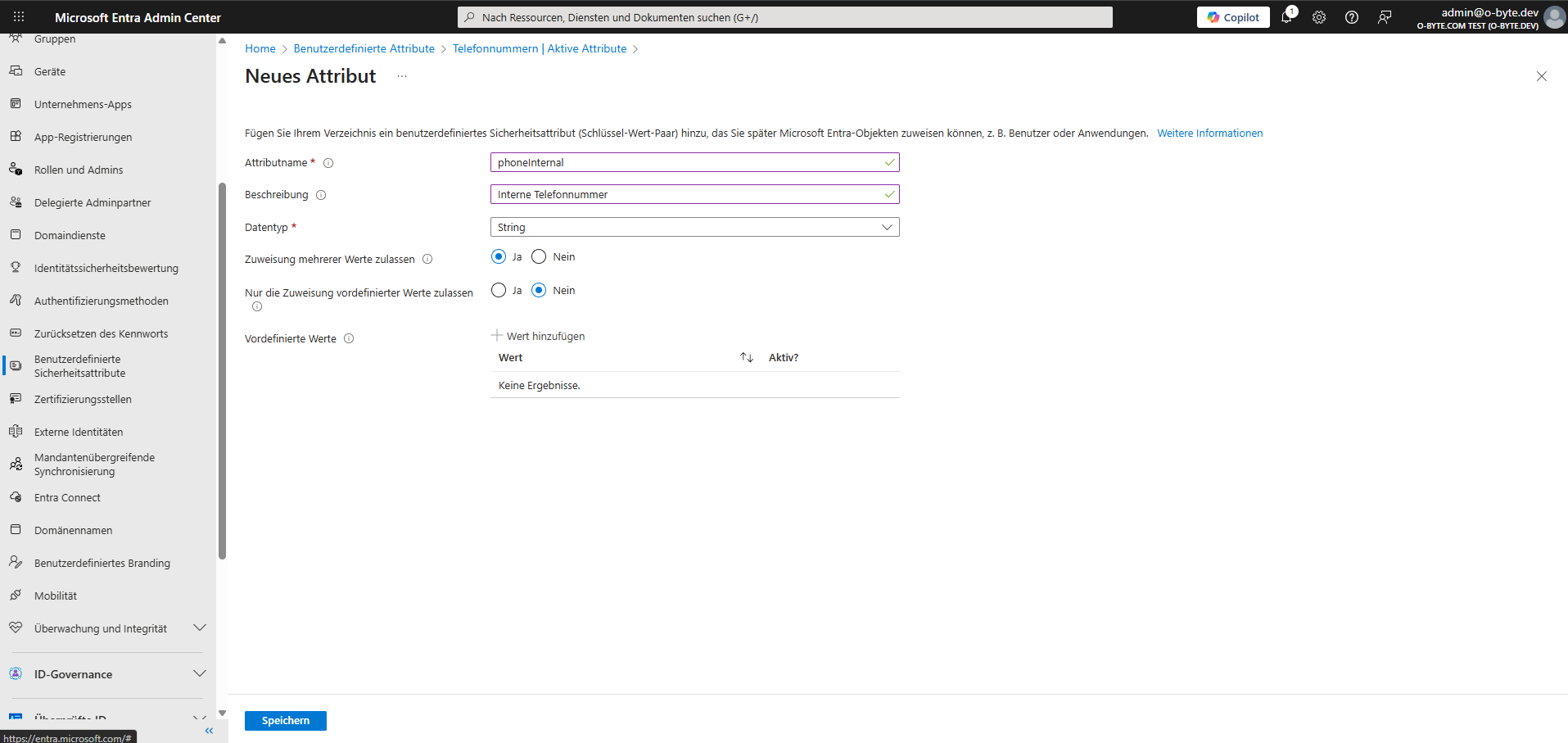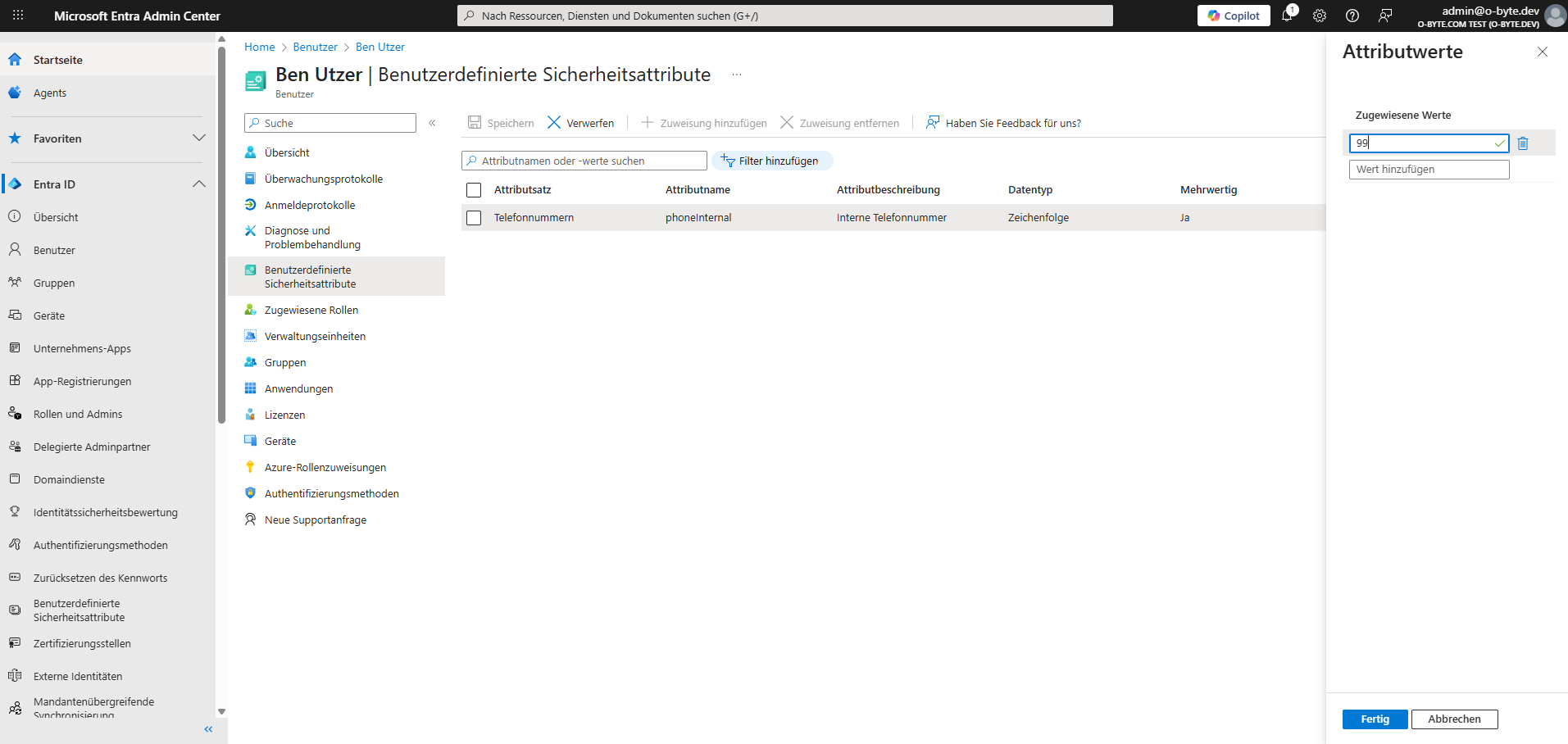 Entra ID benutzerdefinierte Sicherheitsattribute