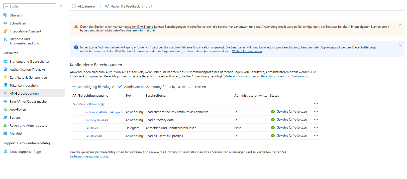 Es gibt delegierte Berechtigungen und Anwendungsberechtigungen. Folgende Rechte werden benötigt.