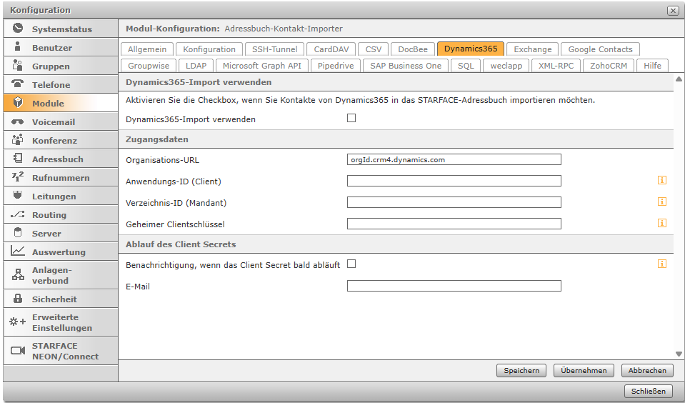 Diese Seite beschreibt die Konfiguration für den Import von Dynamics365 Kontakten mit dem Adressbuch Kontakt Importer. Der Download für das Modul befindet sich auf der Hauptseite.