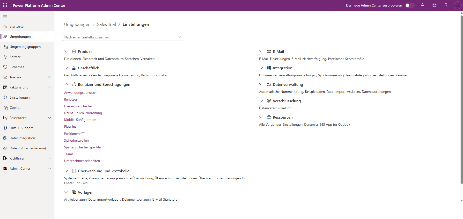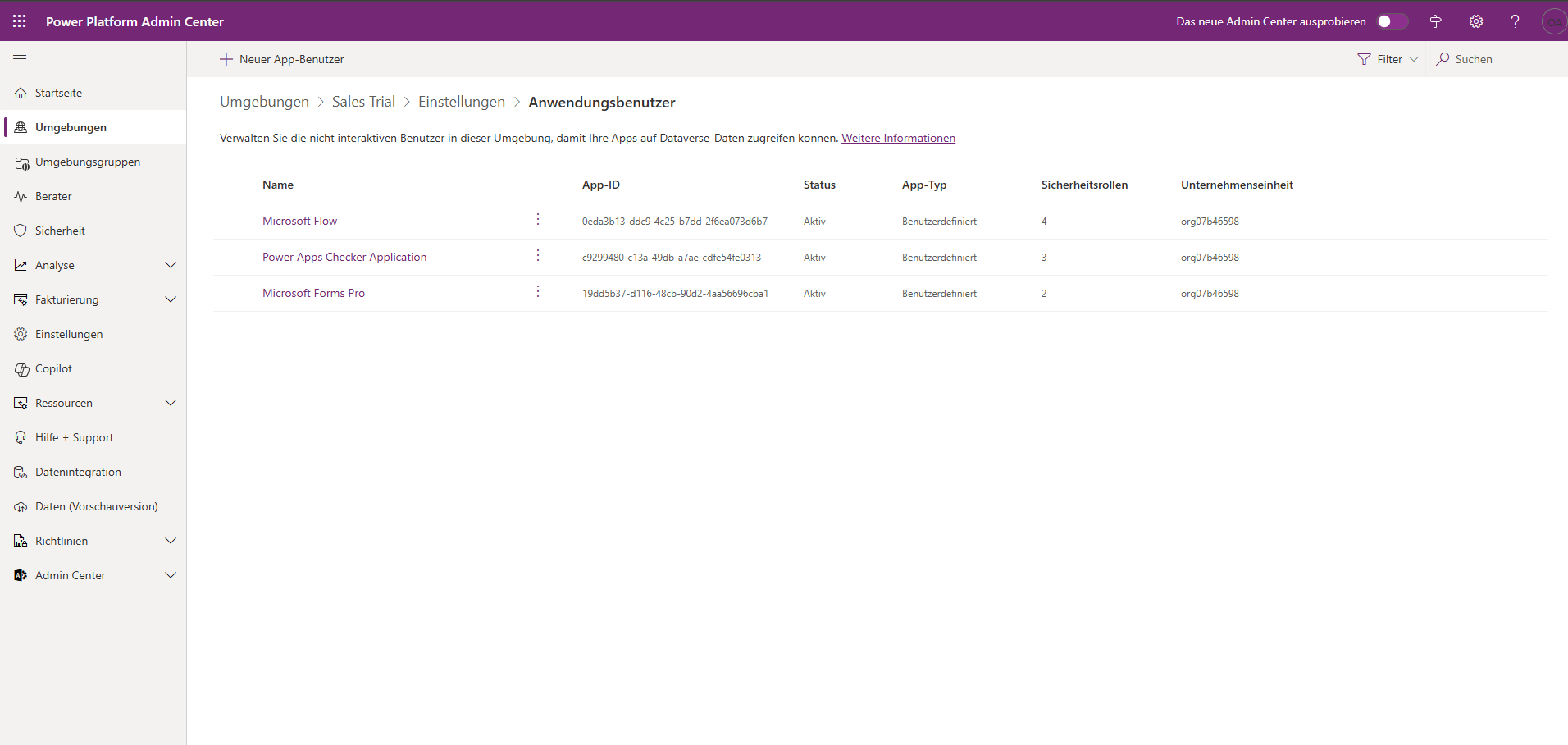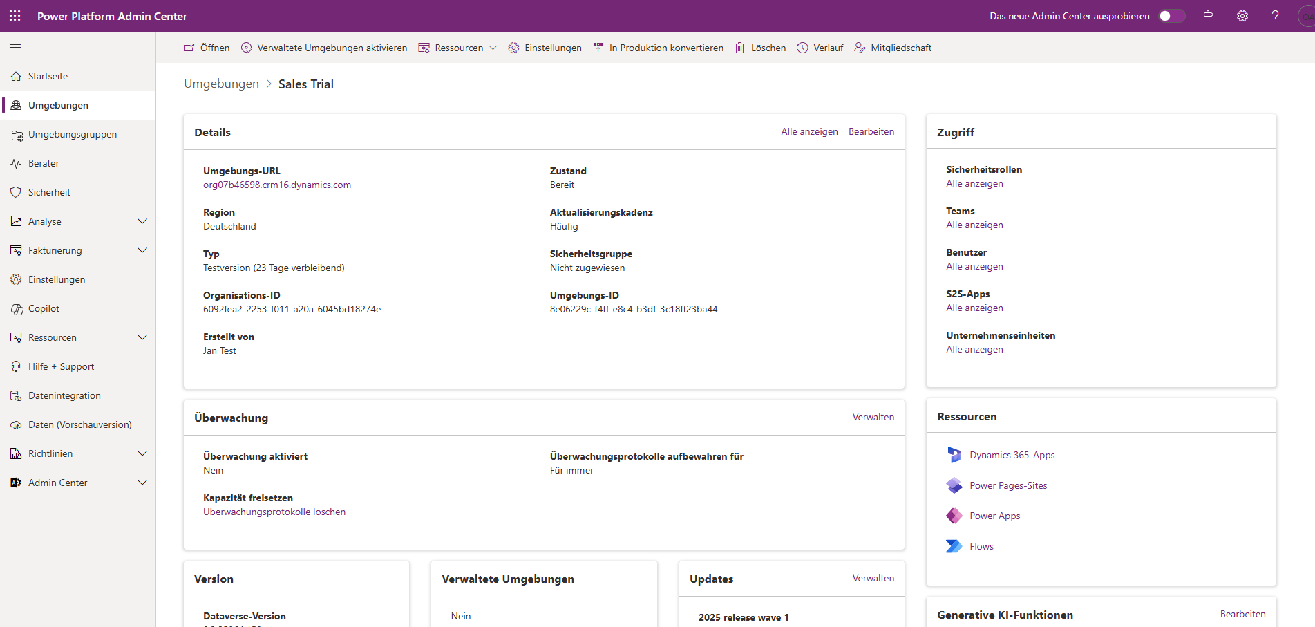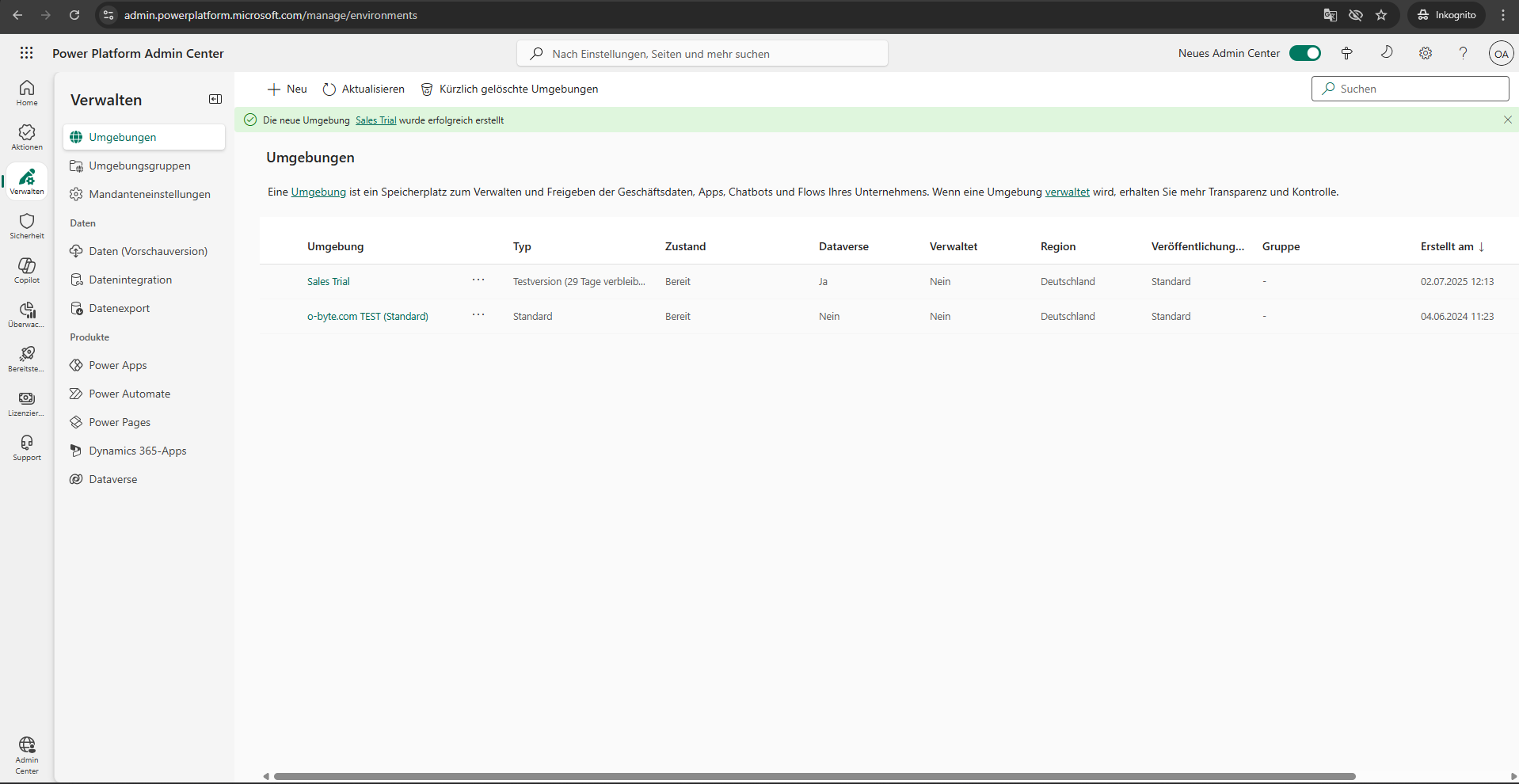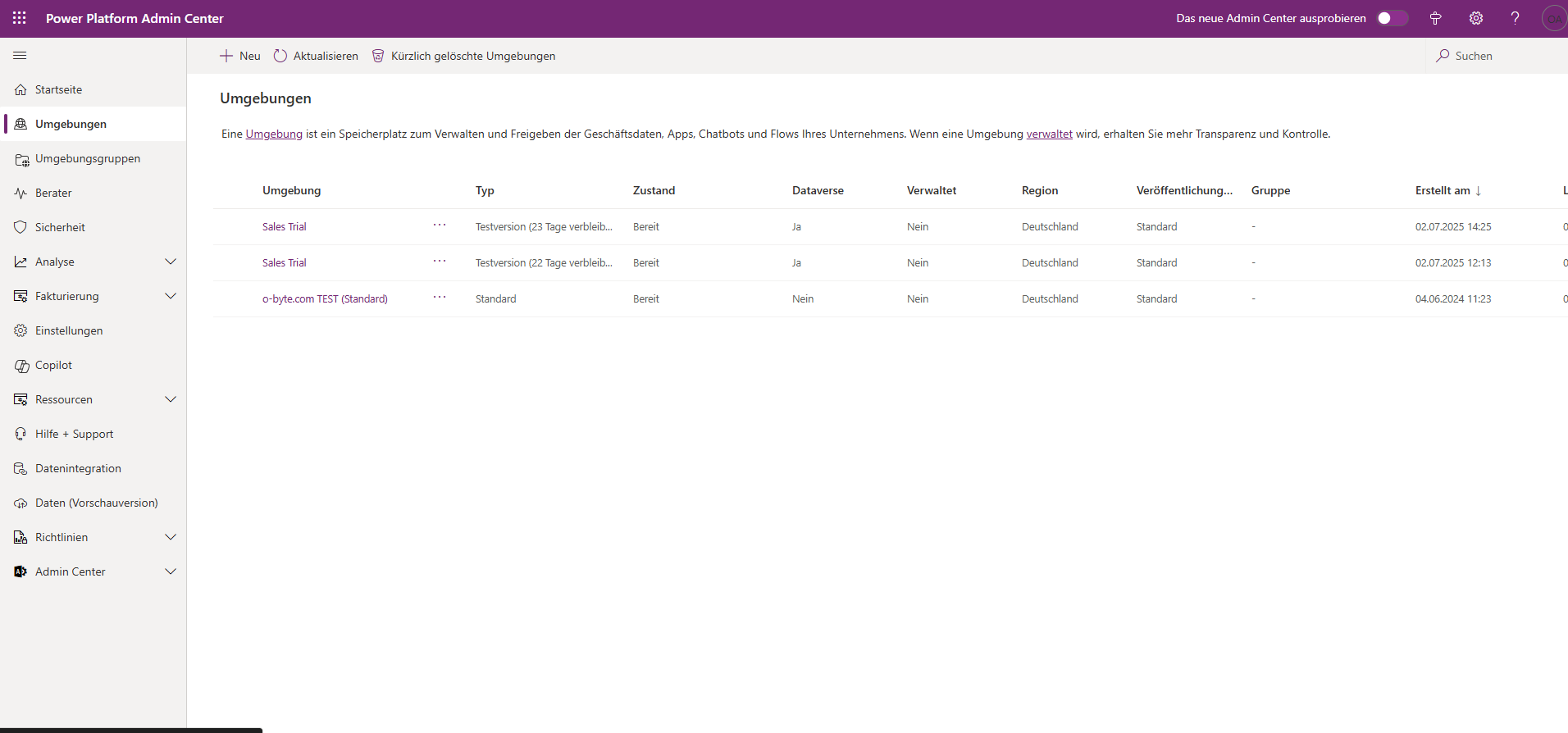 Wechsle zum "Power Platform Admin Center" und prüfe, ob die gewünschte Umgebung angezeigt wird.