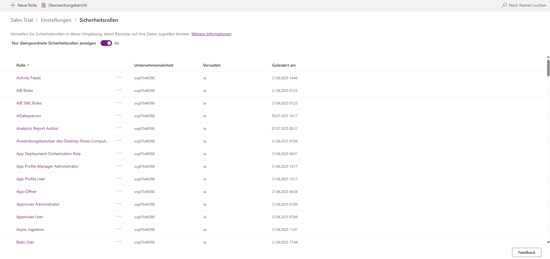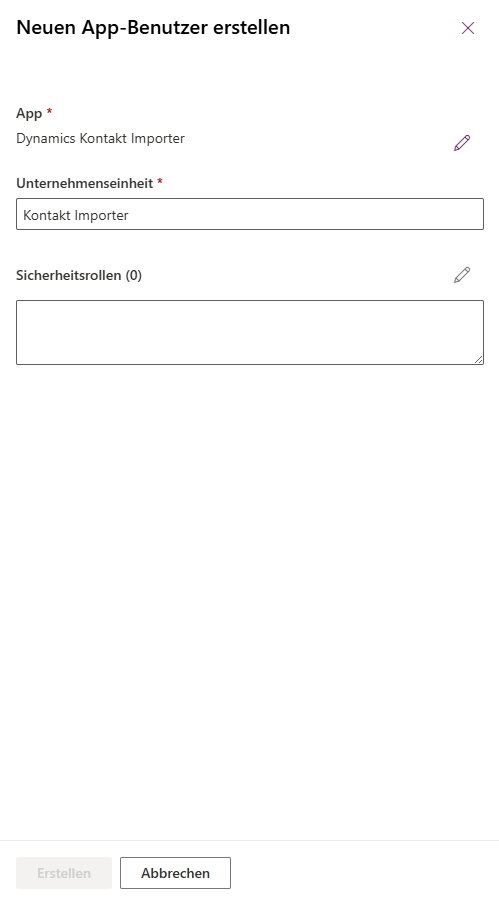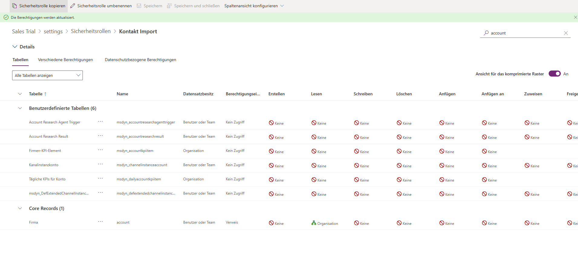 Die erforderlichen Rechte für die Sicherheitsrolle sind: "prvReadContact" und "prvReadAccount".
