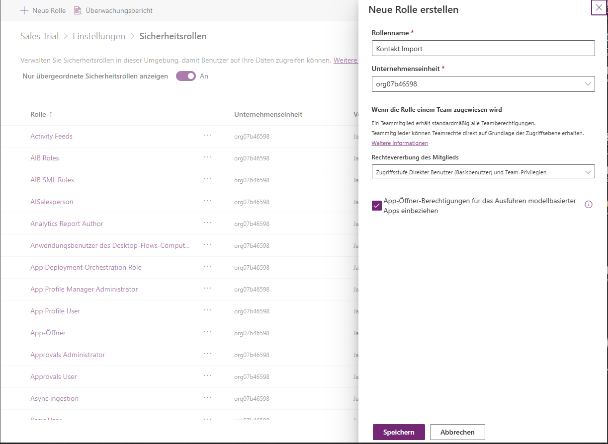 Bearbeite danach die App und weise die Sicherheitsrollen hinzu. (Letztes Bild.)