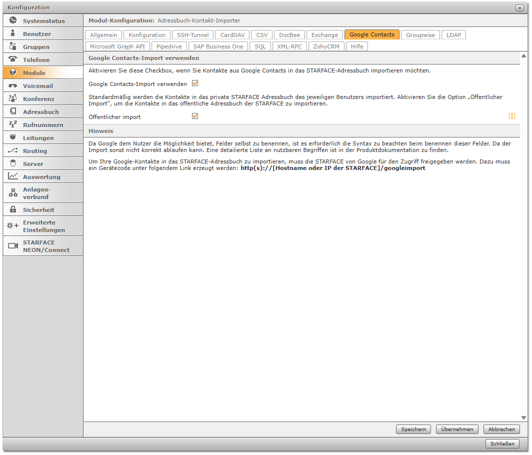 http(s)://[Hostname oder IP der STARFACE]/googleimport