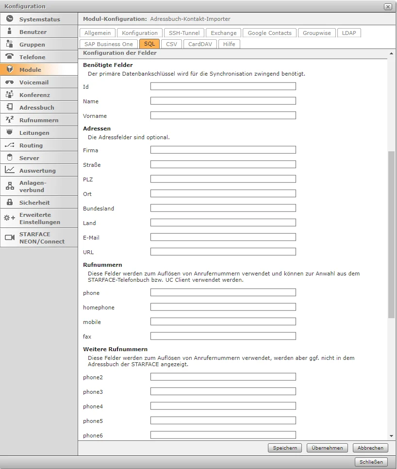Diese Seite beschreibt die Konfiguration für den Import von SQL Kontakten mit dem Adressbuch Kontakt Importer. Der Download für das Modul befindet sich auf der Hauptseite.