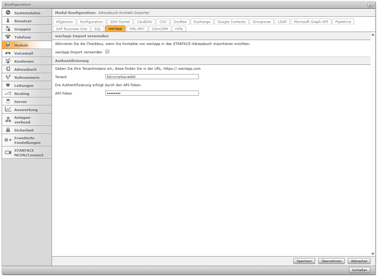 Diese Seite beschreibt die Konfiguration für den Import von weclapp Kontakten mit dem Adressbuch Kontakt Importer. Der Download für das Modul befindet sich auf der Hauptseite.