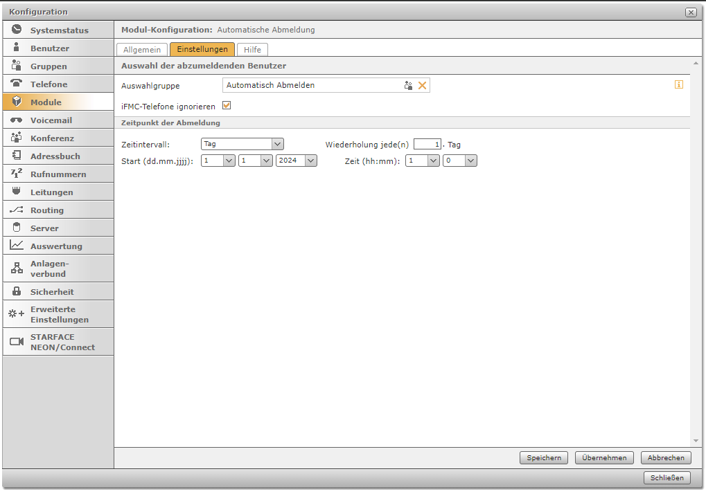 Mit dem Modul „Automatische Abmeldung“ für STARFACE, können bestimmte Benutzer zeitgesteuert und automatisch von ihren Telefonen abgemeldet werden.