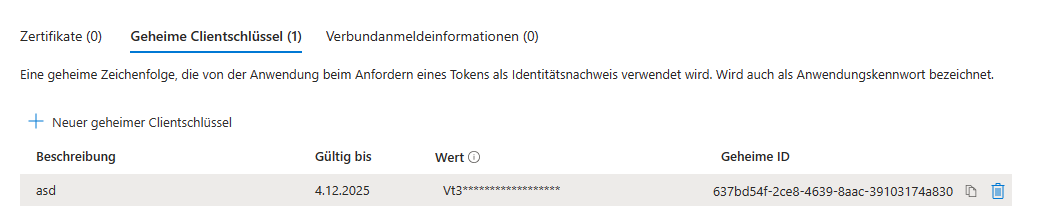 Die Zeichenkette unter Wert, ist der Clientschlüssel, der für die Moduleinrichtung benötigt wird. Kopiere diesen ebenfalls in die Zwischenablage.