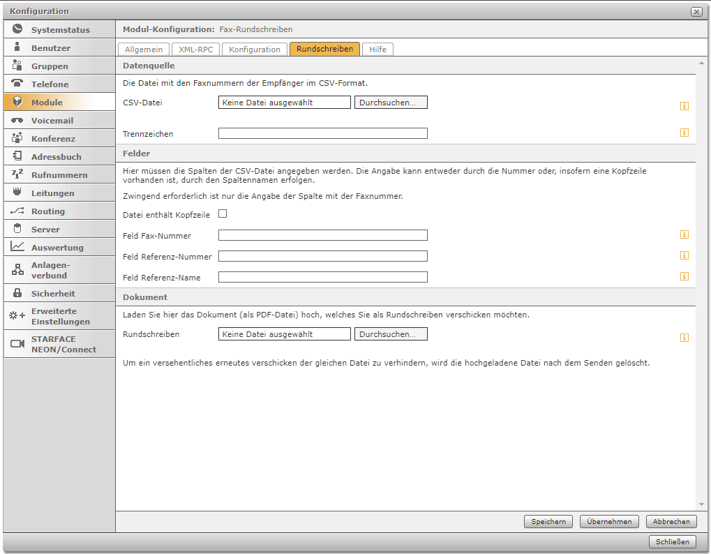 Mit dem Modul „Fax Rundschreiben“ für STARFACE kann einfach und automatisiert ein Fax als Rundschreiben oder als Massenfax versendet werden.