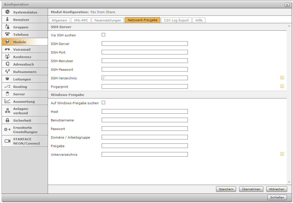 Mit dem STARFACE Modul „Fax from Share“ können .pdf Dateien als Fax versendet werden durch deren Ablage auf einer SSH- oder Windows-Freigabe. Das Modul erkennt automatisch neue .pdf Dateien und versendet diese als Fax und sortiert sie anschließend entsprechend auf der Freigabe um.