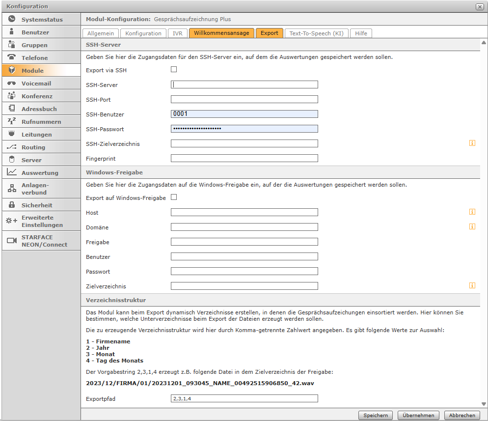 Aktiviere die Checkbox, wenn die Aufzeichnungen via SSH exportiert werden sollen.