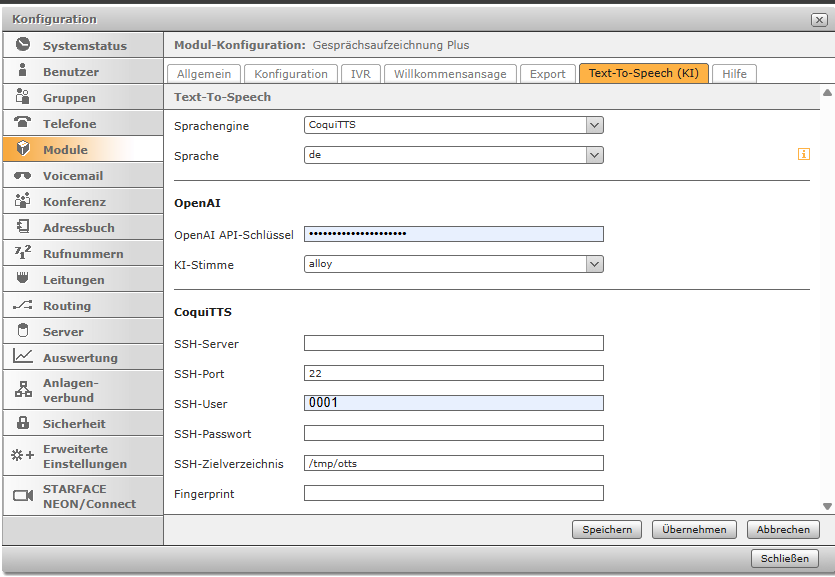 Alternativ dazu kann eine KI-generierte IVR-Ansage verwendet werden. Aktiviere hierzu die Checkbox.