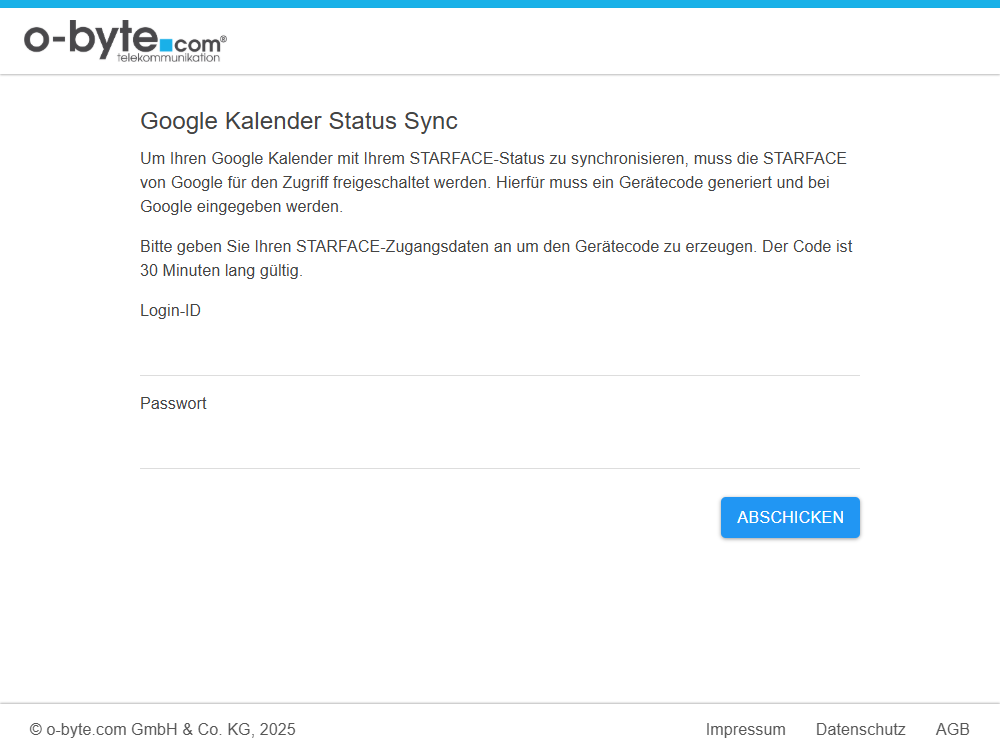 Rufe den Link nach dem Schema "http(s)://[Hostname oder IP der STARFACE]/googlecalendar" auf.