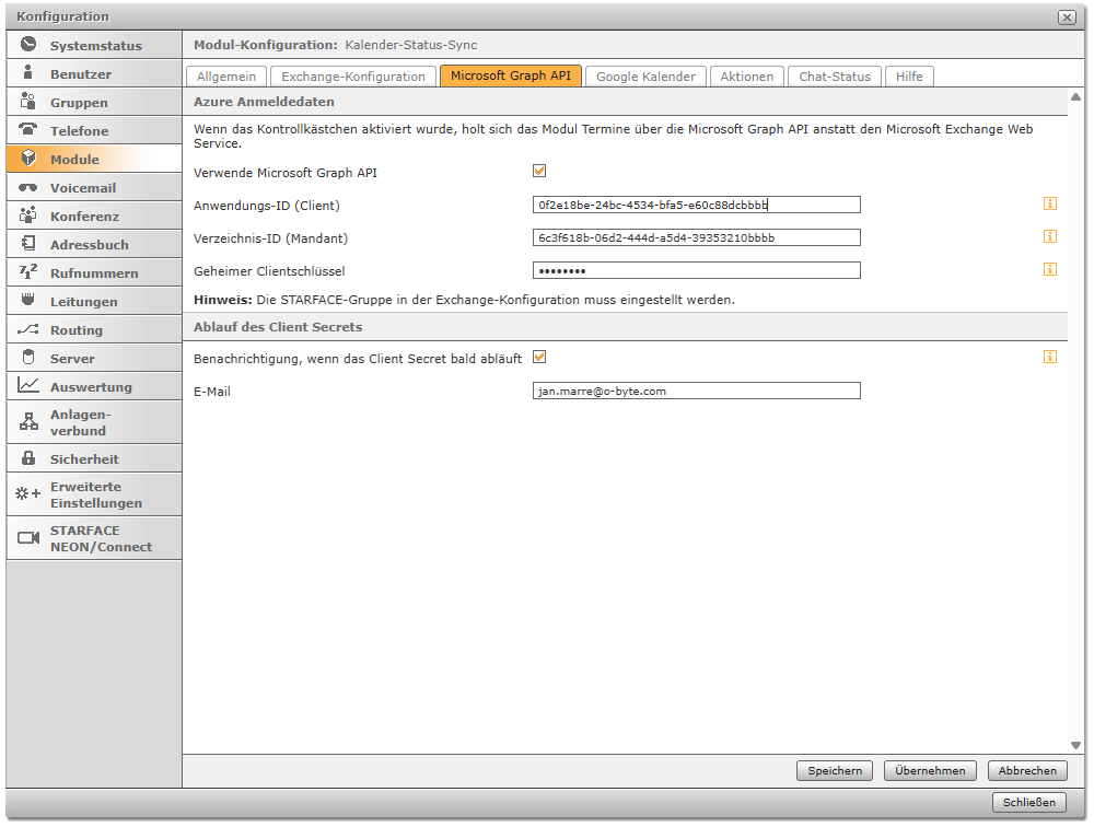 Zur Verwendung dieser STARFACE Erweiterung muss eine Microsoft Graph API eingerichtet werden.