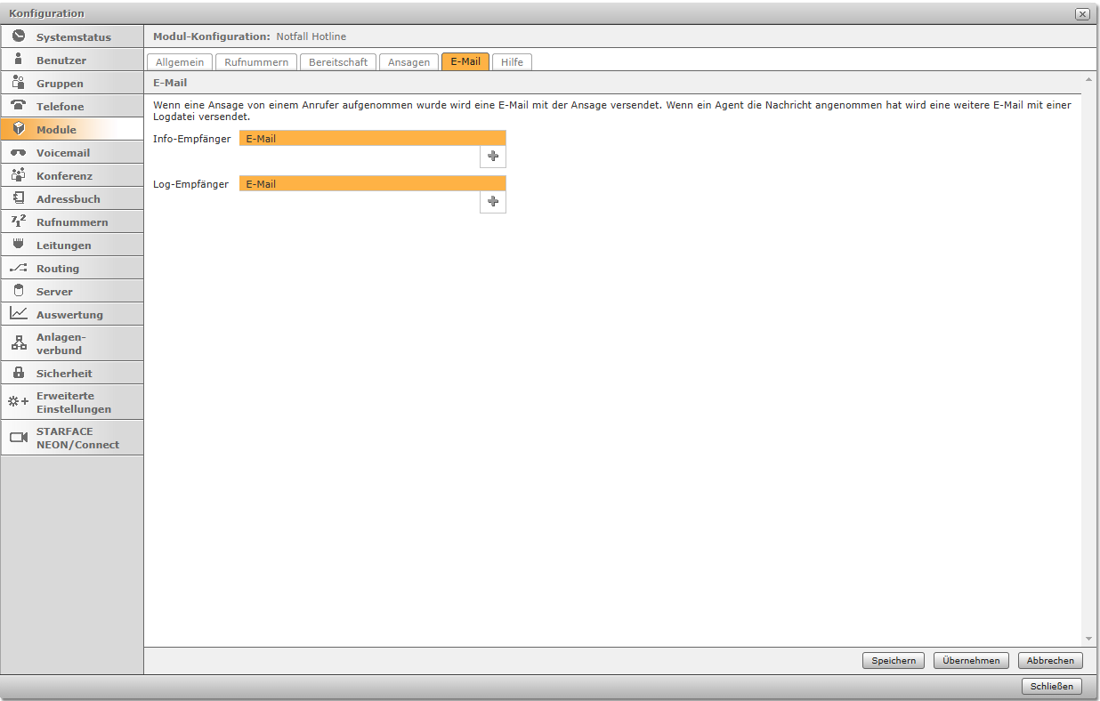 Die Erweiterung "Notfall Hotline" für STARFACE ermöglicht es, Mitarbeiter auch außerhalb der Geschäftszeiten über Support Notfälle zu informieren. Die Information kann auch über E-Mail erfolgen. Die Ansagen im Modul können KI-generiert werden.
