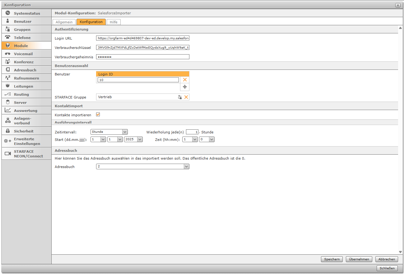 Aktiviere die Checkbox "Kontakte importieren", wenn Kontakte von Salesforce in das Adressbuch der STARFACE synchronisiert werden sollen.