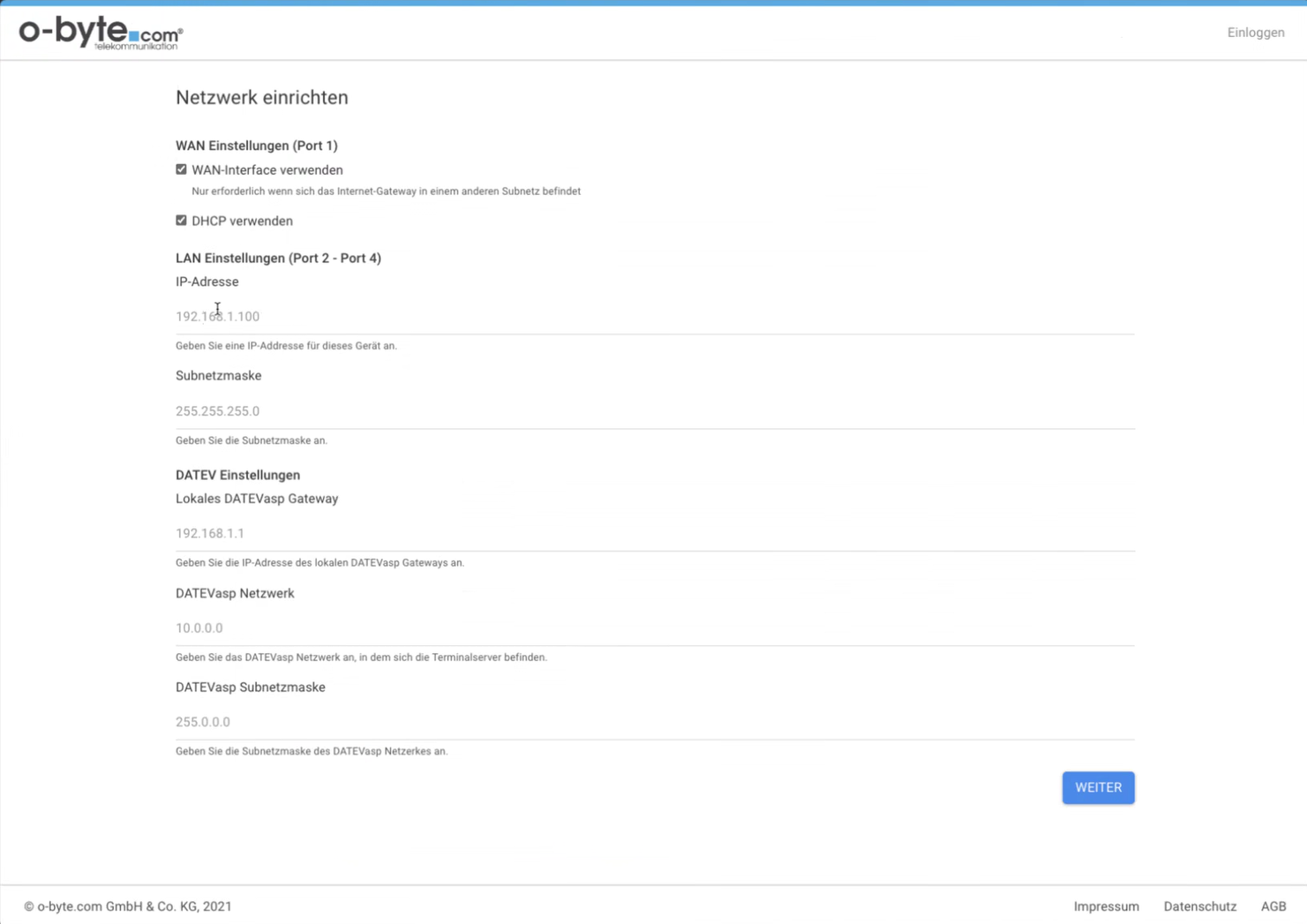 Aktiviere die benötigten Ports und wähle, ob das WAN-Interface eine IP-Adresse via DHCP beziehen soll.