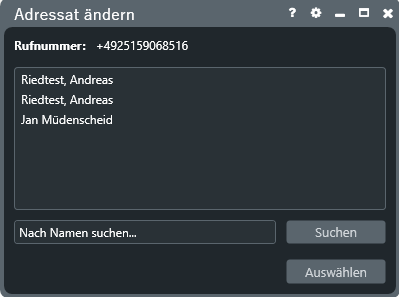 Sollte eine Rufnummer mehreren Mandanten zugeordnet sein, so können Sie vorab den Mandanten auswählen (siehe Screenshot: Telefonie-Integration für DATEV – Auswahl Mandant). Sollte kein Mandant automatisch erkannt werden, oder die Auswahl ist nicht zutreffend, so können Sie über das Suchfeld einen anderen Mandanten auswählen.