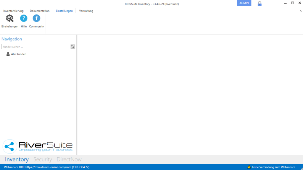 Öffne „RiverSuite Inventory“ und klicke auf “Einstellungen”.
