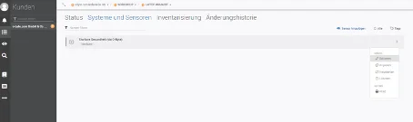 Melde dich auf der Seite von servereye an. Wähle unter Kunden (3 Punkte mit drei Strichen) einen Kunden aus. Es wird eine Liste von Systemen angezeigt, suche nach dem zuvor erstellten Connector und klicke diesen an.