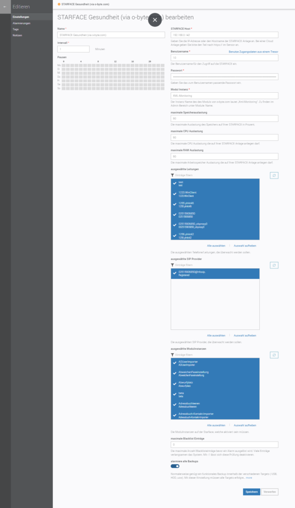 Klicke rechts auf den Button aktualisieren und wähle anschließend die zu überwachen SIP-Provider aus oder wähle unten mit „Alle auswählen“ alle Geräte aus.