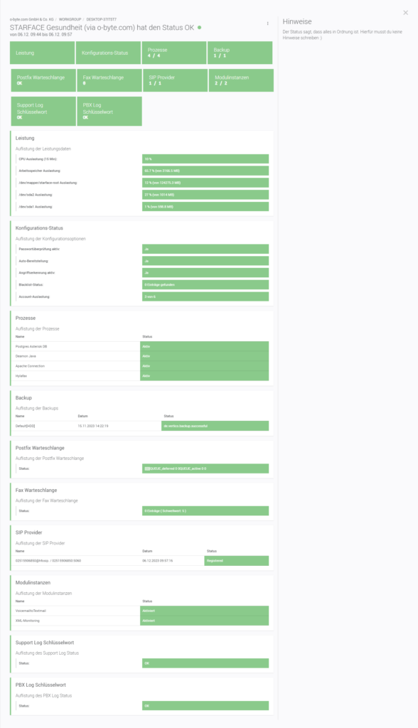Status aller Modulinstanzen (aktiv/inaktiv)