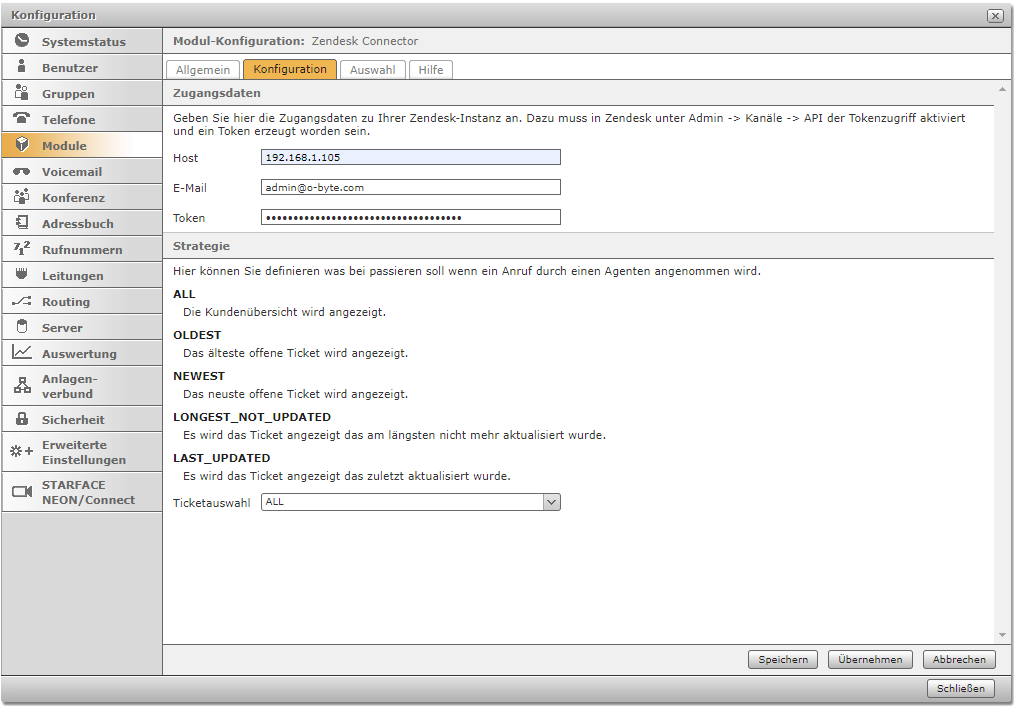 Integration des Ticket-Systems Zendesk in STARFACE.